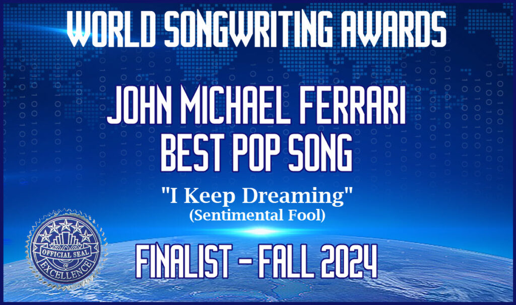 Congratulations. John Michael Ferrari ‘s song “I Keep Dreaming” (Sentimental Fool) reached Top 10 Finalist for Best Pop Song World Songwriting Awards 2024