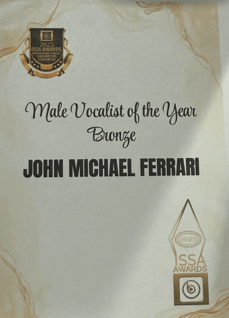 John Michael Ferrari is a Finalist for 2 ISSA Awards 2025: Male Vocalist of the Year and Male Songwriter of the Year. Awards show is August 23rd, where JMF will perform at the after party at the Wild Wing Cafe, Alpharetta, Georgia.