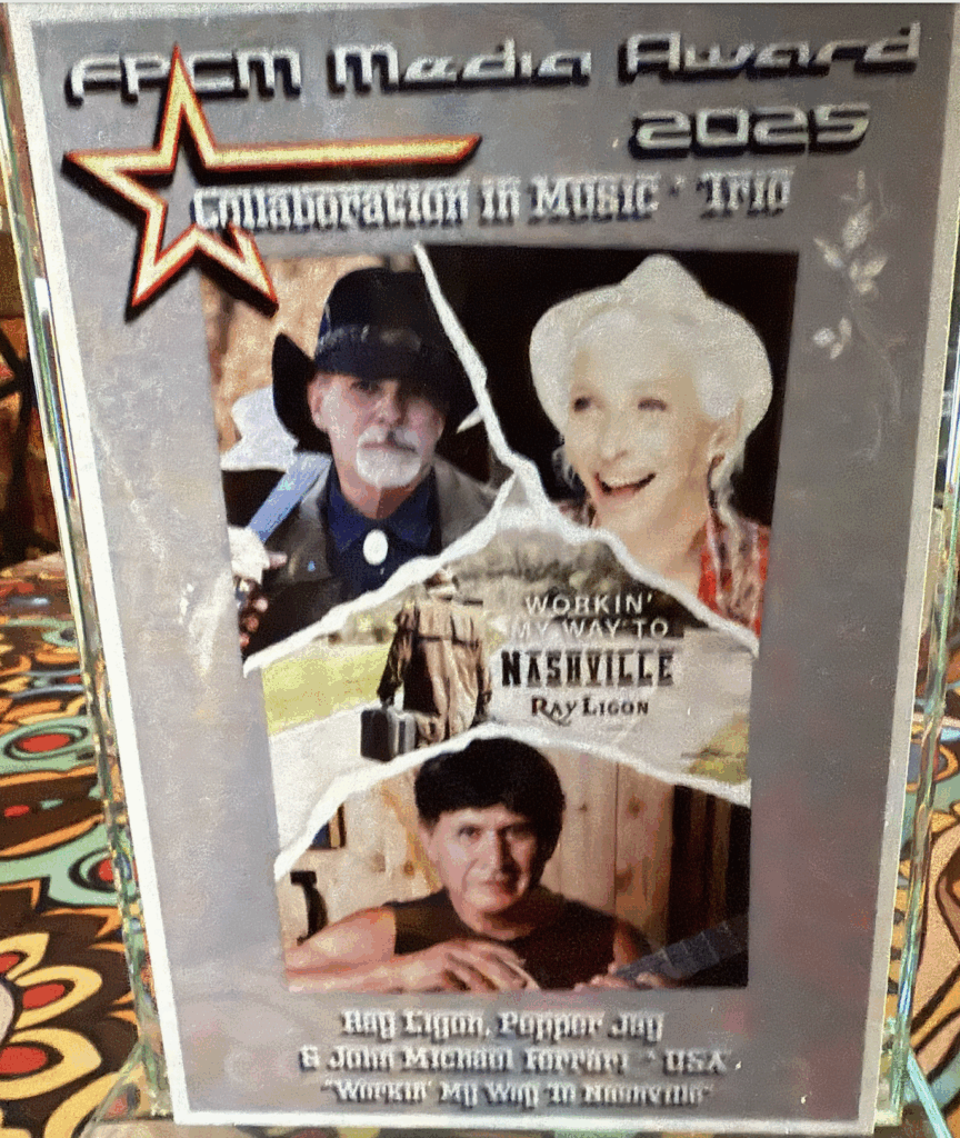 Workin’ My Way to Nashville” country tune co-written by John Michael Ferrari, Pepper Jay, and Ray Ligon, sung by Ray Ligon was named “Outstanding  Country  Single” by Nashville  Music  Awards  2023  and “Songwriter of the Year 50+” by the Kentucky Country Music Association 2023 and Co-Songwriter of the Year at the North American Country Music Festival in Pigeon Forge, Tennessee 2024.